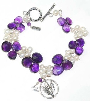 Bracelet:7.5″: 925 Silver, Amethyst Purple, FWPearl White
